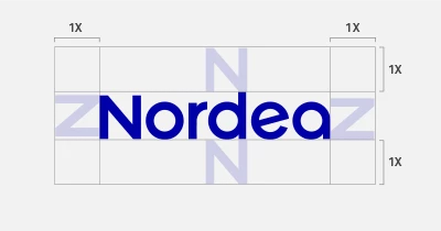 The Nordea logotype should never be overcrowded by, or linked to, elements that reduce its legibility and visibility. In order to ensure it is full recognisable, the logotype should always be surrounded by an area of clear space into which no other graphic elements or objects intrude. The recommended area must never be reduced, but can be increased. The amount of clear space varies in direct proportion to the size of the logotype, with wordmark letter “N” as the definition of X.