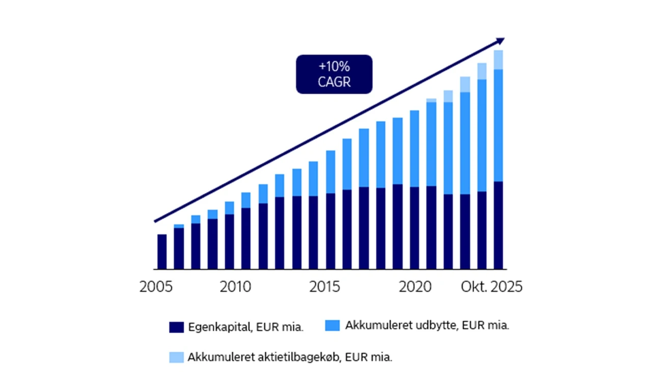 Årligt samlet afkast til aktionærerne, september 2019 til oktober 2025