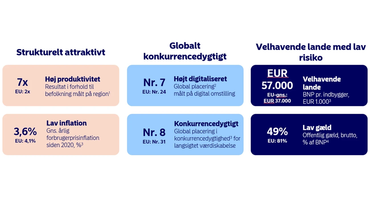 3. IMD’s årlige World Competitiveness Ranking (medianværdi baseret på DK: nr. 3, SE: nr. 6, NO: nr. 10 og FI: nr. 15) – måler, hvordan lande håndterer deres kompetencer til at opnå langsigtet værdiskabelse (2024)