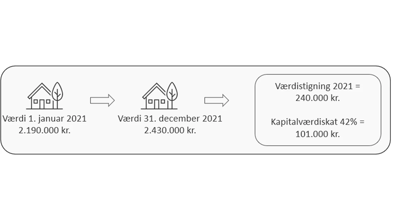 Eksemplet viser, hvor meget et gennemsnitlig hus på 140 m2 steg i 2021