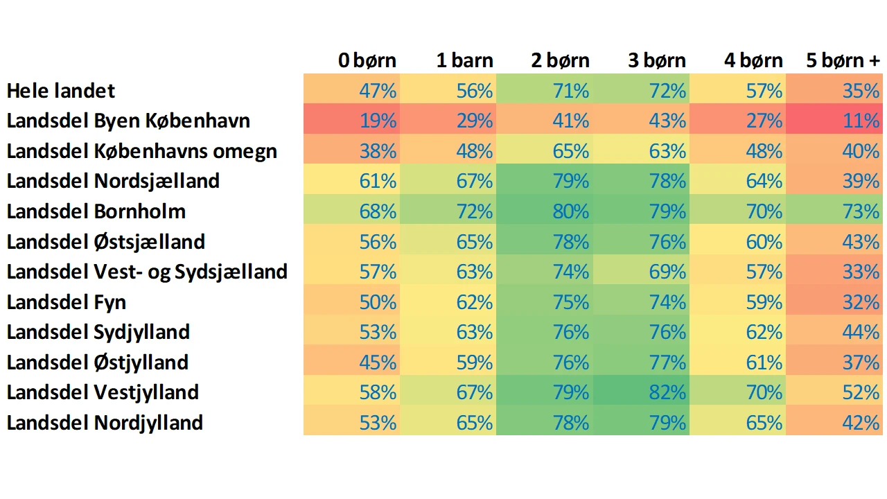 Efterspørgslen på ejerboligmarkedet er nemlig ikke bare et spørgsmål om renter, boligskatter og konjunkturer. Det er i høj grad også et spørgsmål om livsfaser. Og her spiller børn en afgørende rolle.