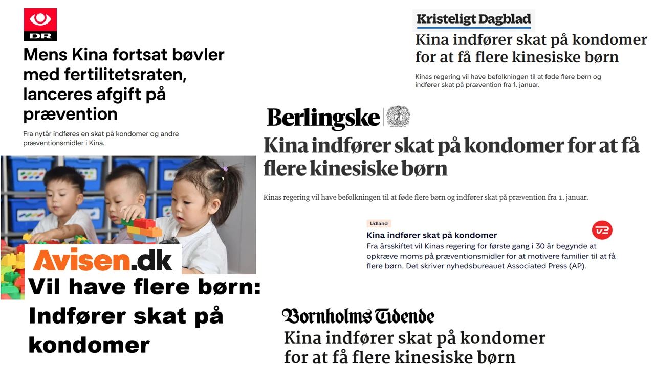 Udviklingen er ikke et særligt dansk fænomen. For nylig læste jeg et Ritzau-telegram med overskriften: “Kina indfører skat på kondomer for at få flere kinesiske børn.” Overskriften var så absurd, at den nærmest krævede at blive læst. Konklusionen var, at momsen på prævention skulle hæves fra 0 til 13 procent.
