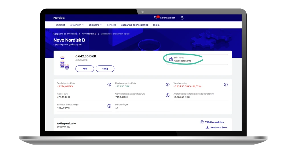 Nu er det blevet nemt at investere og følge dine investeringers udvikling i mobil- og netbank. I denne artikel viser vi dig, hvordan du kan rette 'gevinst og tab' for at kunne se din værdiændring ved at følge få enkle trin.