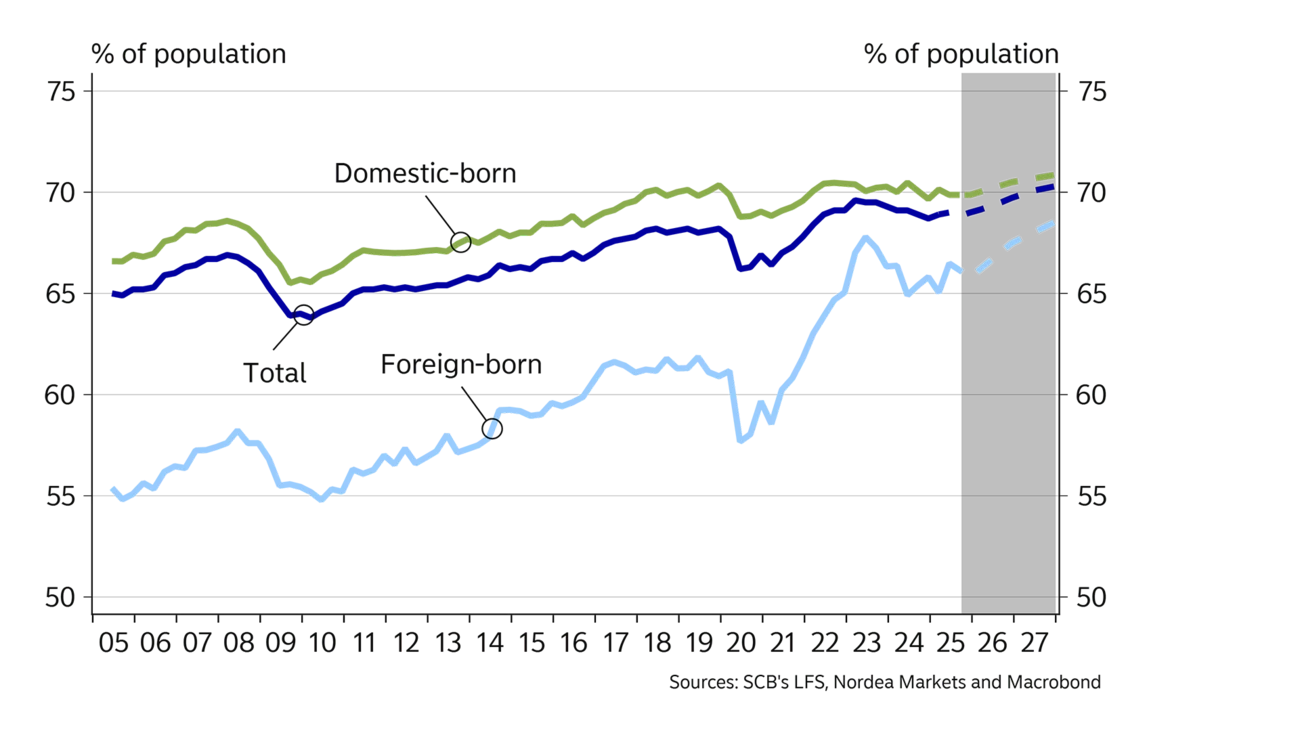 Thanks to the recovery, the employment rate – the number of people employed relative to the population – will rise in 2026 and 2027. The positive trend among foreign-born people will especially help drive a higher employment rate.