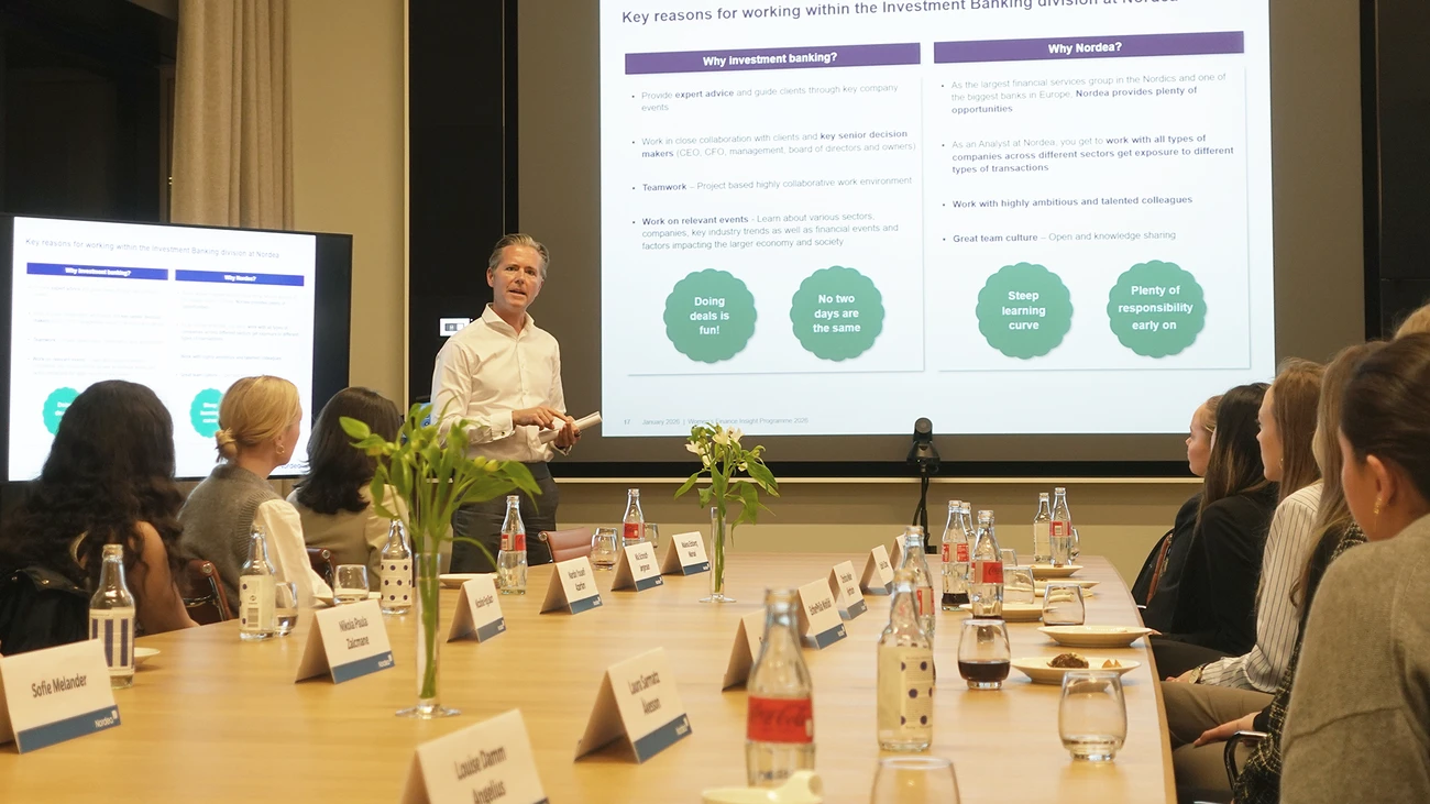 During the spring, the talents will dive into the work and career opportunities within Investment Banking & Equities and Markets, with every opportunity to network and learn from the best. During 5-7 afternoon sessions, they’ll work with real-life business cases, participate in workshops and prepare for future interviews within banking – and get a hands‑on feel for what a future career in finance might actually look like.