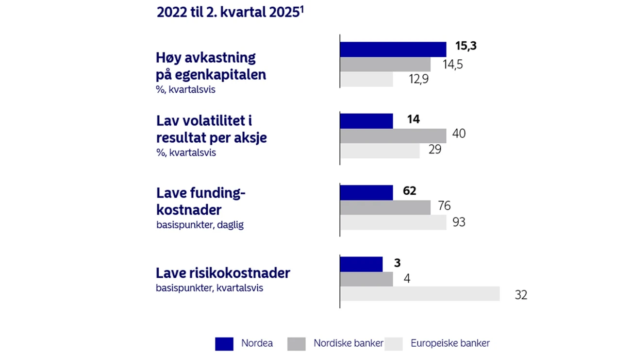 - Slike uttalelser er uttalelser om fremtidige forhold som gjenspeiler ledelsens nåværende syn på bestemte fremtidige hendelser og potensielle økonomiske resultater. Selv om Nordea mener at forventningene som uttrykkes i slike uttalelser om fremtiden, er fornuftige, kan det ikke gis noen garanti for at forventningene vil vise seg å ha vært riktige. Av ulike årsaker kan resultatene avvike vesentlig fra det som fremsettes i uttalelser om fremtiden.