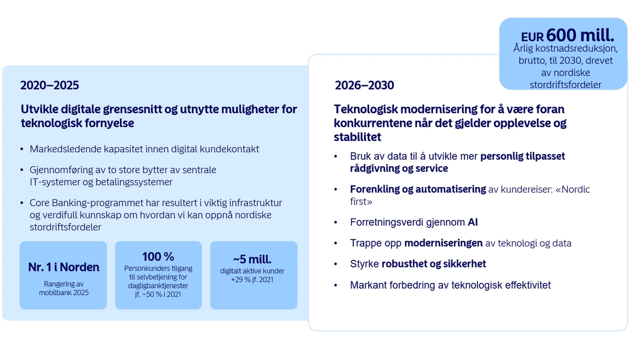 Nordea has updated its strategy and set new financial targets for the period 2026–30. Nordea’s strategy is aimed at delivering superior earnings per share growth, driven by profitable, faster-than-market income growth and significant improvements in cost efficiency.