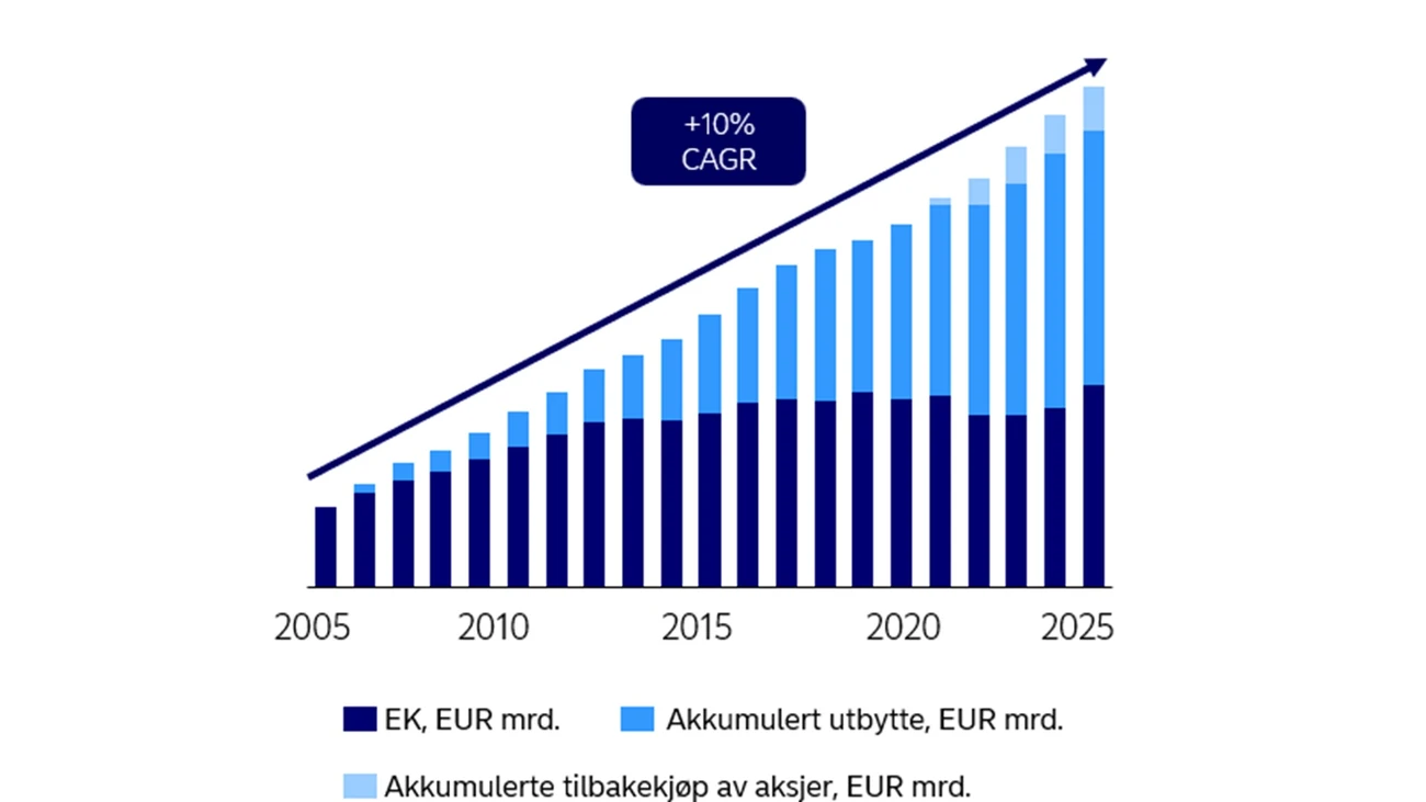 Samlet avkastning til aksjonærene, september 2019 til oktober 2025