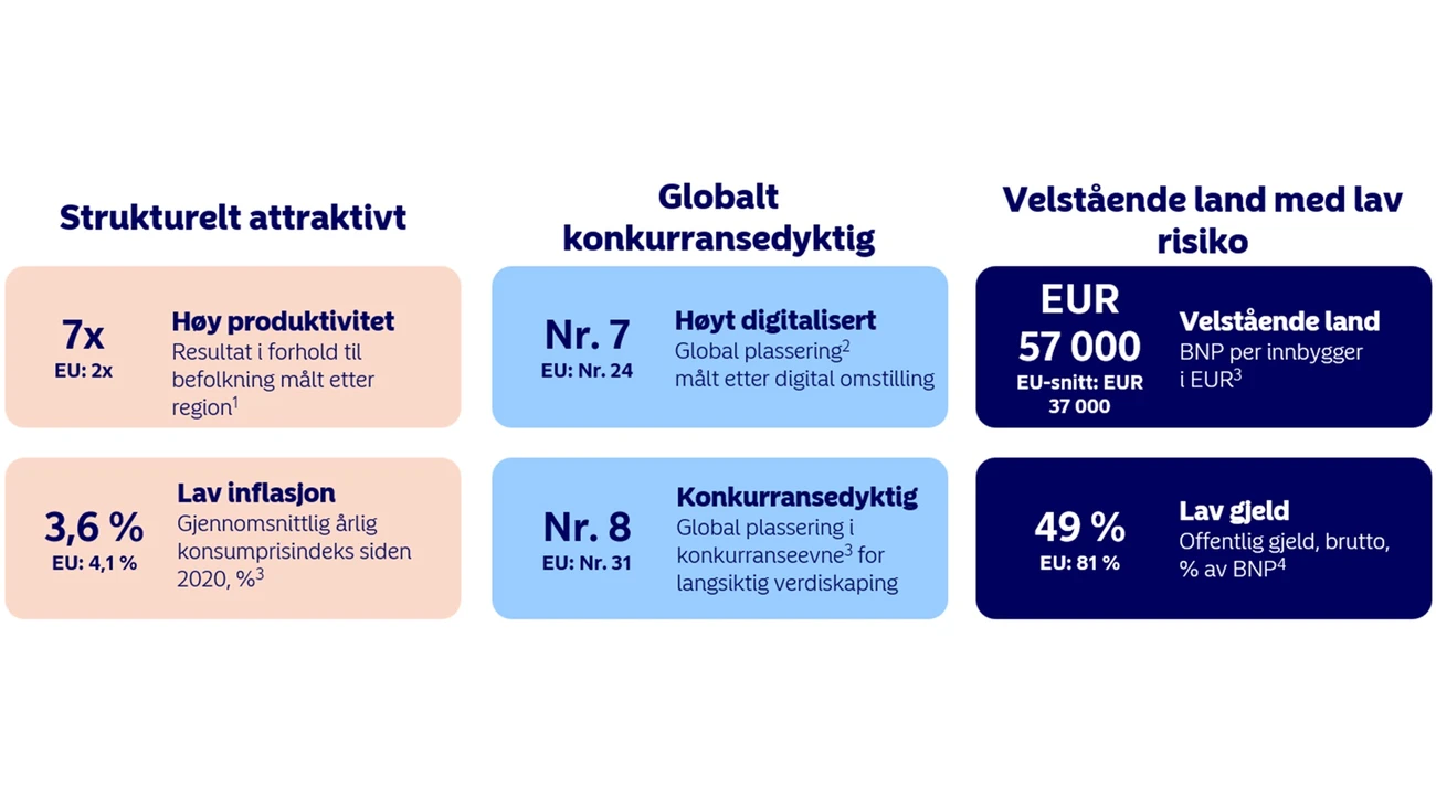 3. IMDs årlige World Competitiveness Ranking (medianverdi basert på DK: nr. 3, SE: nr. 6, NO: nr. 10 og FI: nr. 15) – analyserer hvordan land håndterer kompetanse for å oppnå langsiktig verdiskaping (2024)